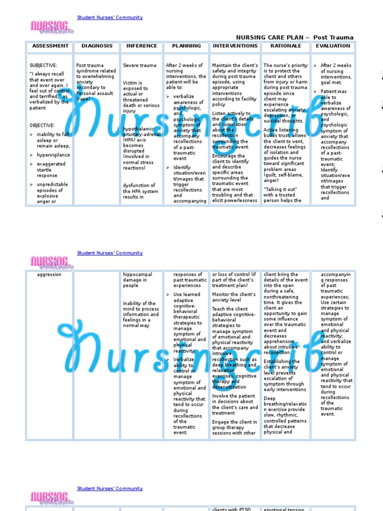 Nursing Care Plan For Post Trauma Ncp Pdf Psychological Trauma Recall Memory
